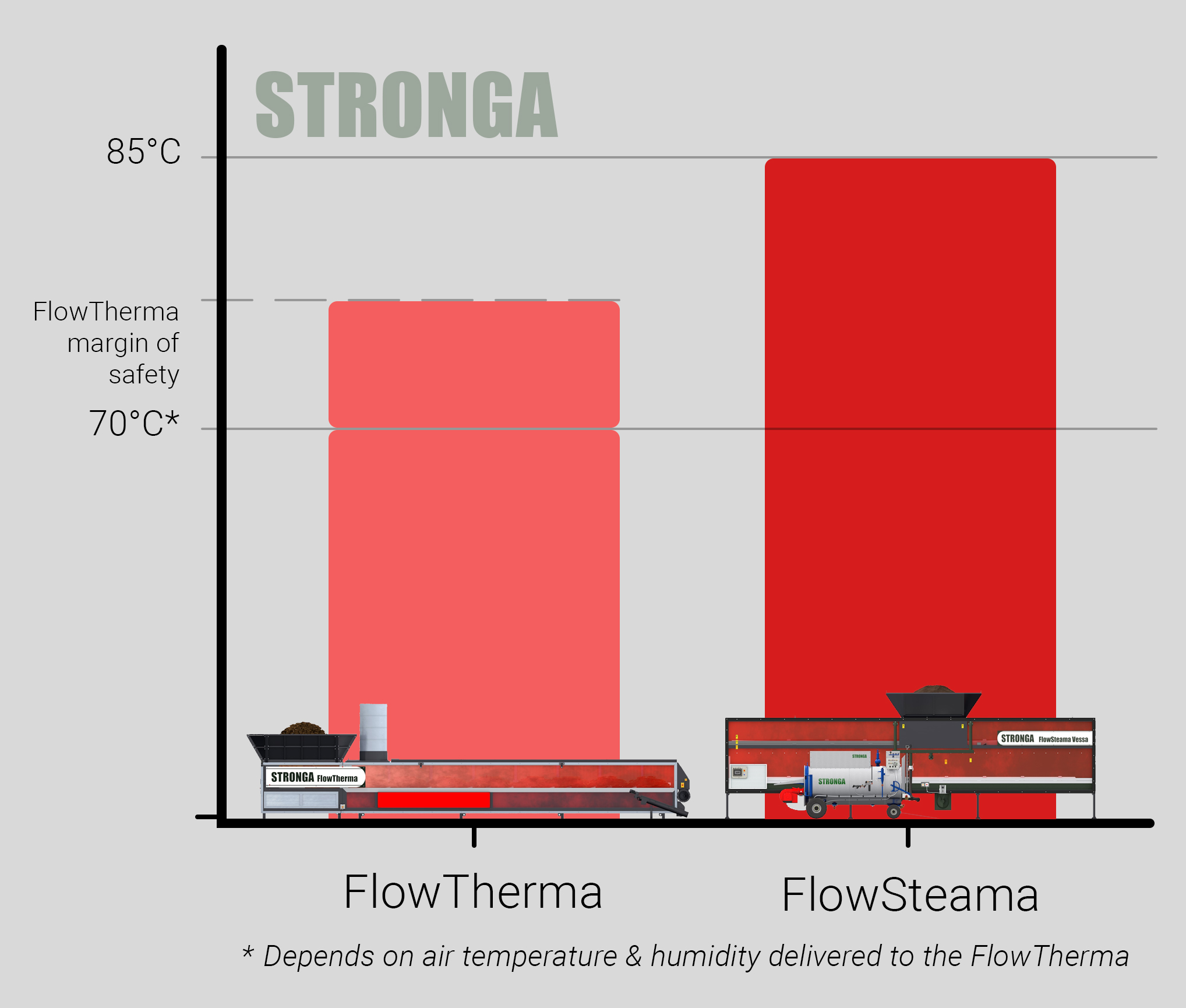 The Stronga FlowTherma is a dual-purpose, dry heat, dryer and pasteurisation system. Thermal treatment and drying ensures combined moisture removal and pathogen removal, allowing producers to comply with EU regulations.